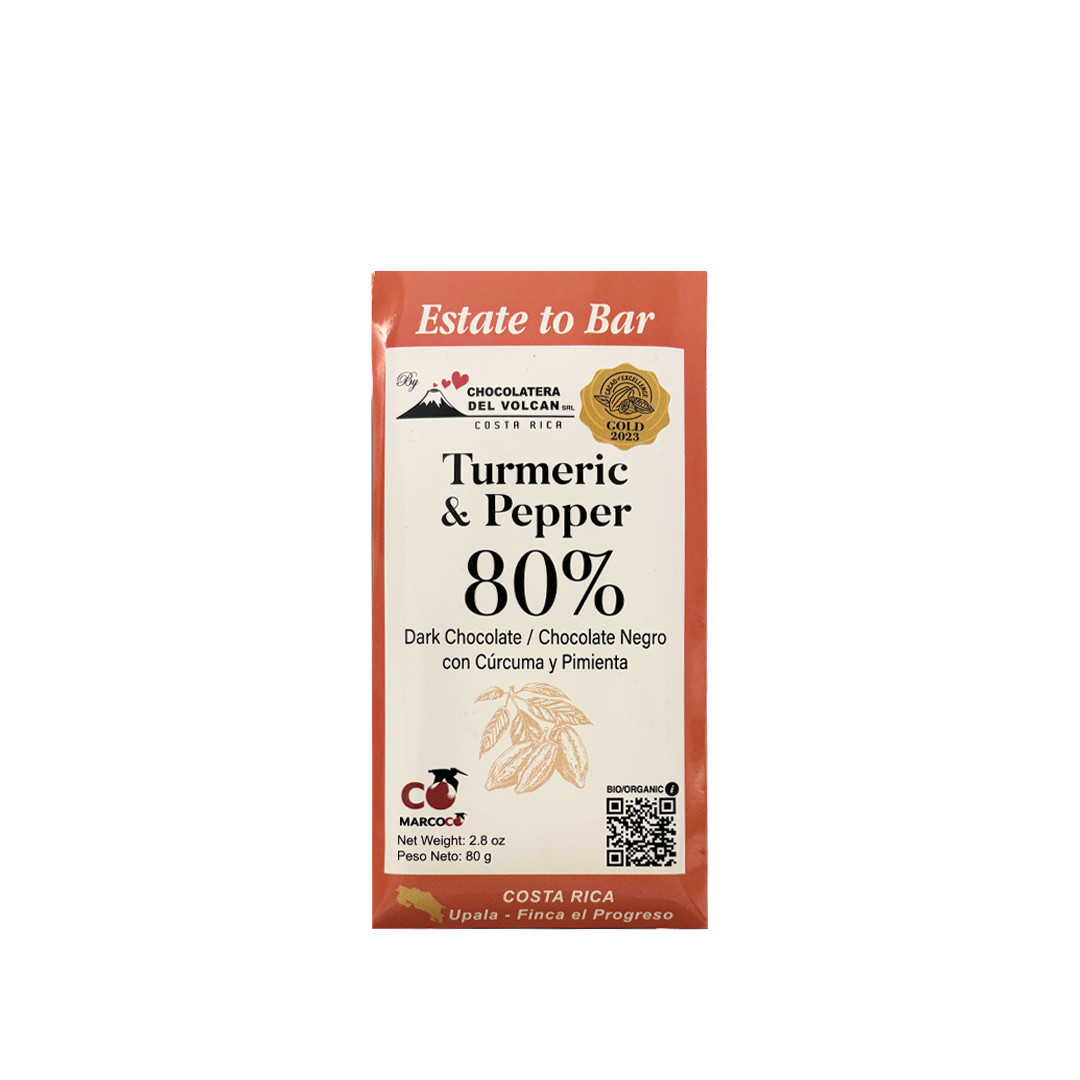 Tavoletta di cioccolato fondente 80% cacao con Curcuma e Pepe - Costa Rica